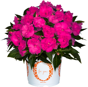 New Guinea Impatiens Roller Coaster Hot Magenta – Hot Magenta may cause some people to reach for their sunglasses – even in the shade. This is one of three new popular colors added to the Roller Coaster series of New Guinea Impatiens. These varieties are unique in the ruffled appearance of their flower petals, creating an almost three-dimensional look. Consumers will love them in containers and hanging baskets wherever they need pops of color in shade. Suggested for 2.5-quart to 3-gallon pot production.