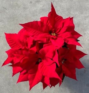 Red Ribbons are a true poinsettia innovation with uniquely shaped bracts and leaves. This new variety is easy to grow with low to medium vigor. Its free branching variety provides a florist-type quality. With its uniquely-shaped oak leaf bracts, bold red color and abundant cyathia, it is perfect to use with foliage combinations or as a standalone novelty.
